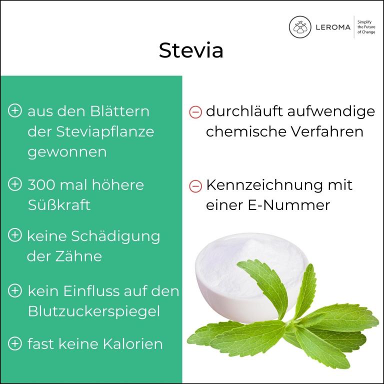 Aus den Blättern der Steviapflanze werden “Steviolglykoside” gewonnen, die als der Süßstoff Stevia bekannt sind, der sich besonders dadurch auszeichnet, dass seine Süßkraft 300 Mal höher ist als die von Haushaltszucker, weshalb er nur in extrem geringen Mengen verwendet werden muss. Zudem ist er kalorienfrei, schädigt die Zähne nicht und beeinflusst den Blutzuckerspiegel kaum. Neben all den positiven Eigenschaften hat Stevia allerdings auch ein paar Nachteile: der Süßstoff basiert zwar auf einer natürlichen Rohstoffquelle, durchläuft aber aufwendige chemische Verfahren, denn die Steviolglykoside werden extrahiert, entfärbt und mehrfach kristallisiert, bevor sie verwendet werden können. Somit sind sie ein hochverarbeitetes Lebensmittel, das auf der Zutatenliste mit einer E-Nummer gekennzeichnet werden muss und so die Kaufentscheidung von Verbrauchern negativ beeinflusst, die sich zunehmend einfache und leicht verständliche sowie möglichst wenig verarbeitete Zutaten wünschen.