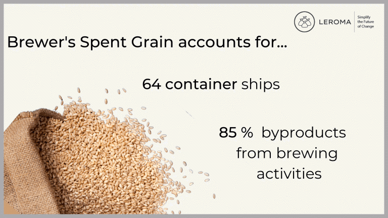 As it was mentioned before BSG consists mainly of barley and is a byproduct achieved through the process of brewing beer. As a byproduct, it is already “used” and is considered as a food waste that must be disposed of. Sounds pretty simple. But did you know that the overall amount of the Brewers Spent Grain is equivalent to 64 container ships and accounts for 85% of byproducts from brewing activities?