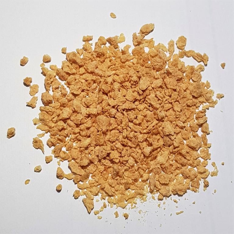 Soy protein texturate (TVP) is a plant-based protein product made from soy flour or soy protein concentrate. Textured soy protein (TSP) is produced by a process called extrusion, in which the soy protein is heated and pressurized until it takes on a fibrous, meat-like texture. The resulting product can then be flavored, seasoned and used as a meat substitute in a variety of foods. Textured soy is relatively low in fat, high in carbohydrates and high in plant protein. In addition, soy protein texturate is high in fiber and minerals such as potassium and magnesium. B2B wholesalers, suppliers and distributors offer beige to light brown TVP in various forms and with no inherent flavor.
